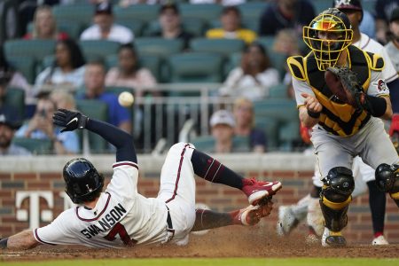 Ronald Acuna Jr. was hit by a pitch in the third, stole second and scored when Swanson lifted an opposite-field bloop single to right. Swanson scored from first on d’Arnaud’s two-out double down the left-field line to make it 3-0.