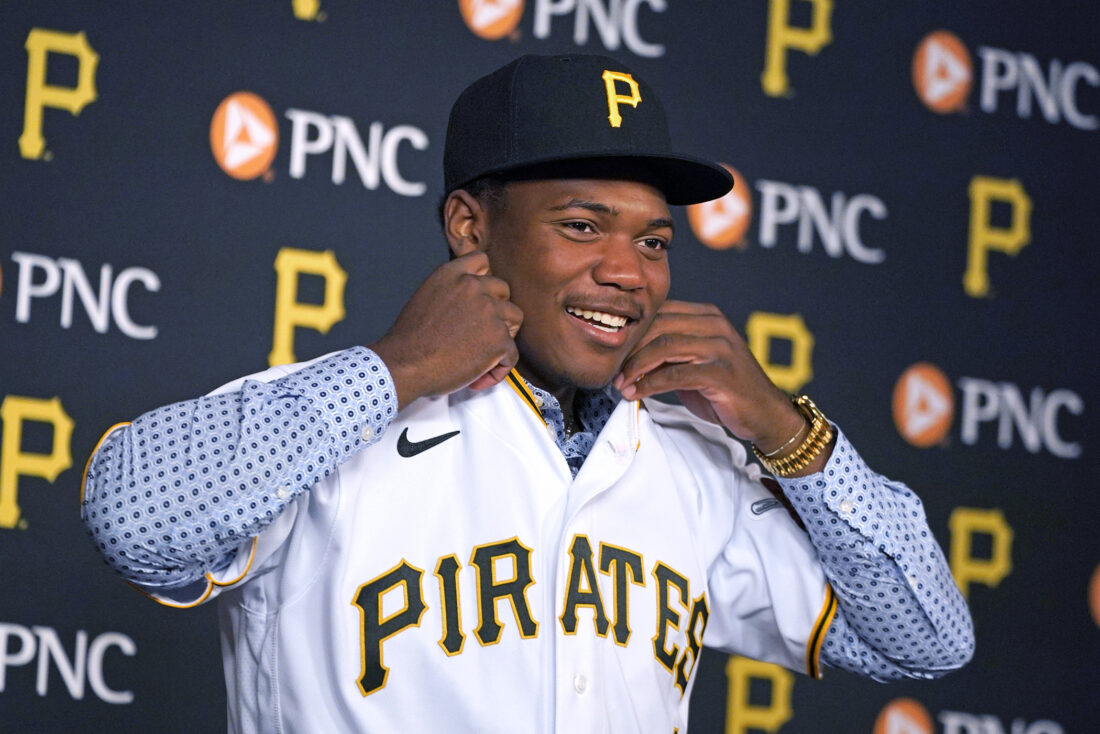 AP Photo Pittsburgh Pirates first-round draft selection Termarr Johnson meets with reporters after signing his contract with the team, before a baseball game between the Pirates and the Philadelphia Phillies in Pittsburgh on Friday.