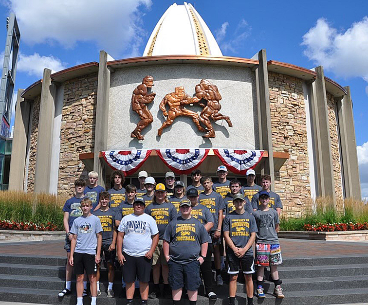 Times Observer Photo by Steve Younger Members of the Eisenhower football team pose in front of the Pro Football Hall of Fame in Canton, Ohio.
