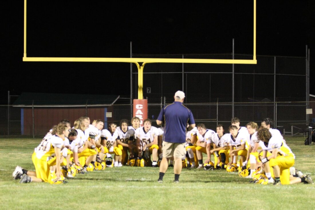 Eisenhower head football coach Jim Penley talks to his team after last week’s 41-0 victory over Cochranton. Times Observer Photo by Steve Younger