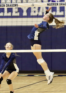 Warren fell, 21-25, 25-16, 5-15, in the junior varsity match. Sophie Walker had 14 digs for Warren, Lauren Fajbik added four kills, Lilly Newton had two kills and two blocks, Sophia Fromknecht contributed one kill, and Delaney Wright chipped in four assists.