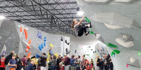 The team, in its second season of competition, sent 10 climbers to Pittsburgh. It was the first of five Region 62 qualifying events. A climber’s top two scores determine his or her ranking and whether or not that climber is invited to the Regional Championships. Region 62 includes a swath of the U.S. from Indianapolis to Morgantown, including Pittsburgh, Cleveland, Columbus, Cincinnati, and Detroit.