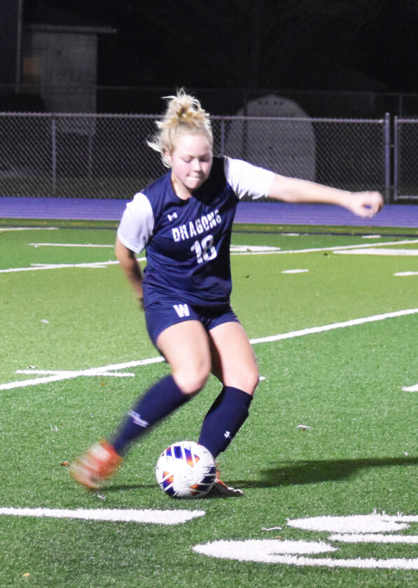 - Warren senior Lauren Andersen moves a ball upfield. Times Observer Photo by Christian Storms