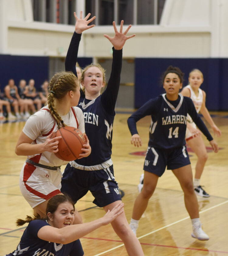 The first half was close throughout. The highlight was a deep, deep 3-pointer by Ruhlman to end the first quarter, which saw Warren lead 14-12. Farr’s 3-pointer in the first 15 seconds of the second quarter pushed the Dragons’ lead to 17-12, but the Trojans went into the break leading 23-22.