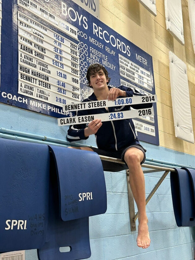 Despite a 69-66 loss in the boys meet, Warren junior Hugh Harrison broke two more school records. He broke the 50-meter freestyle record previously held by Clark Eason in 2016 at 24.83 seconds with his 24.30. Harrison also broke a 2014 mark in the 100-meter breaststroke set by Bennett Steber in 1:09.60 with his 1:07.01 on Monday.