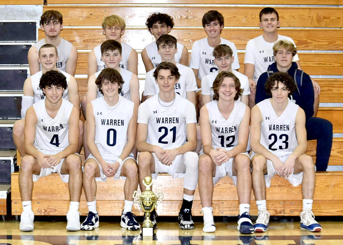 Photo submitted to Times Observer Warren’s boys basketball team defeated Union 75-45 on Saturday to win the Brookville Tip-Off Tournament at Brookville High School. Team members, in front, from left, are: Jack Darling, tournament MVP Parks Ordiway, Owen Becker, Anthony Errett and Braylon Barnes. In the middle are: all-tournament team members Tommy Nyquist and Brady Berdine, Carson Chase, Dylan Johnson and Eric Dippold. In back are: Konnor Hoffman, Johnny Corbett, Logan Crissey, Chase Sitler and Grady Corey.