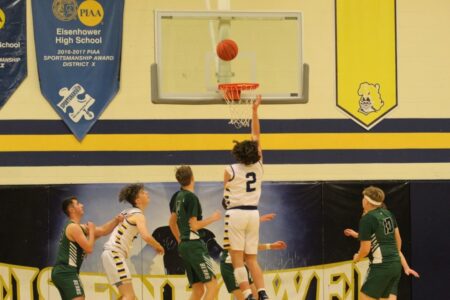 In a closely played junior varsity contest that wasn’t decided until the final seconds, the Knights sealed the win when Derek Guiher’s shot dropped in to put the Knights up 34-32 with 15 seconds remaining. Guiher led Eisenhower with 12 points, while the Bears were led by Austin Sherwood’s 11 points.