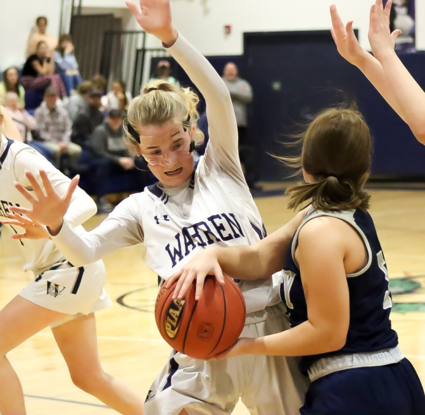 Halle Kuzminski and Sammie Ruhlman combined for 13 points in Warren’s 17-4 first quarter, and the Dragons were off and running. Ruhlman led nine Lady Dragon scorers with 14 points, seven rebounds and six assists.