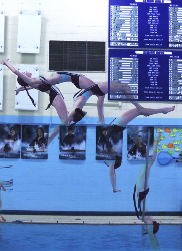 File photo courtesy of Mark Evans Multiple exposure dive by Warren junior Izzy Heacox, who won the 2023 McDowell Invitational on Friday and the Dragons finished first as a team.