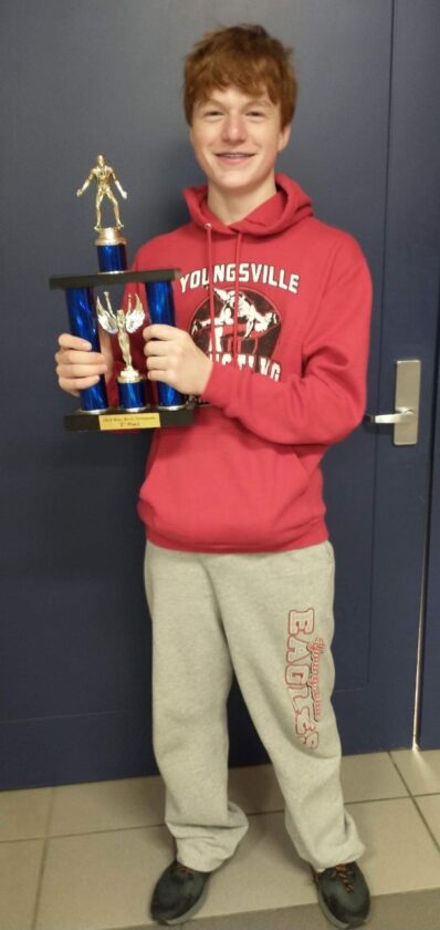 Three Youngsville junior high wrestlers headed to Waterford last Saturday for the Bison Brawl and all three came home with a trophy for their efforts.