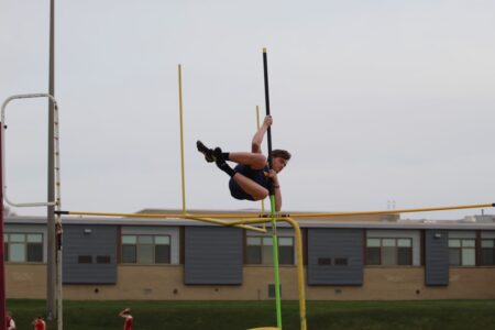 Times Observer Photo by Steve Younger Eisenhower’s Mikael Beaver clears the bar in the pole vault.