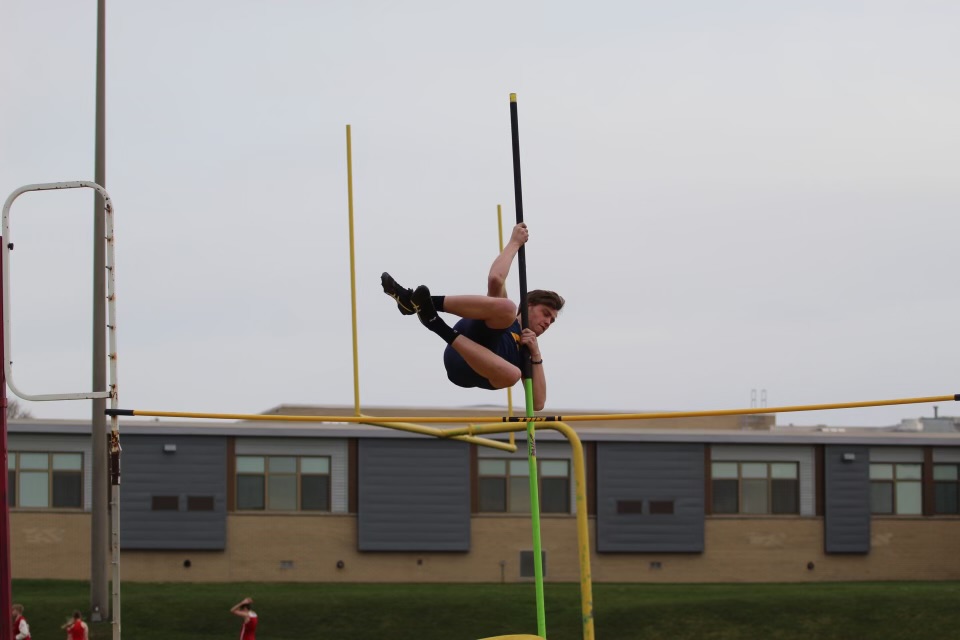 - Times Observer Photo by Steve Younger Eisenhower’s Mikael Beaver clears the bar in the pole vault.