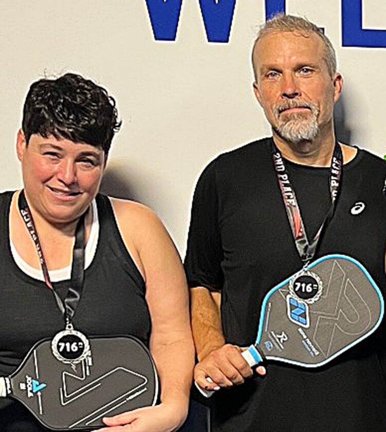 Marlene Sandberg of Warren and Steve Bittinger of Sherman, N.Y. took silver in the 4.5 Mixed Division over the weekend in the 716 Battle of the Paddles Pickleball Tournament at Pickleball Island in Grand Island, N.Y.