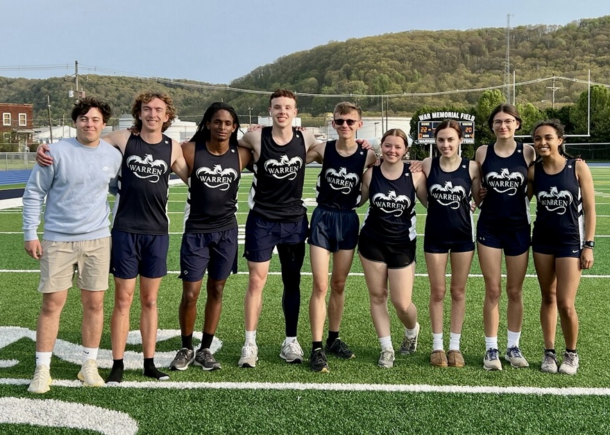 Photo submitted to Times Observer Warren’s track and field teams celebrated Senior Day on Tuesday at War Memorial Field. Seniors include, from left, Carter Pascuzzi, Ethan Best, Corban Reinard, Cayden Wright, Louis Flatt, Lilly Branthoover, Gracie Gatto, Shyann Rulander, and Carmen Moore. Absent from photo is Harley Poole.