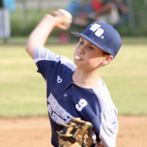 - Warren Boys Minors pitcher Reed Fitzgerald blows a bubble on the mound on Tuesday at Betts-Jackson Field in a Little League All-Stars 9-10-year-olds’ loss to visiting DuBois. Warren will play again on Saturday at a location to be announced. Times Observer photo by Jon Sitler