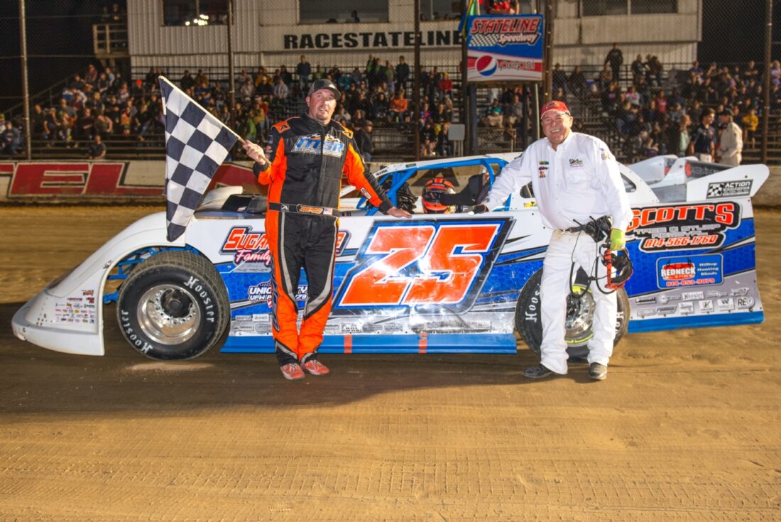 Lunger would gun down his competition in the RUSH Pro Mods, leading the entire distance and holding off a late-race challenge from five-time winner and points leader Steve Dixon. Lunger would stand in Stateline’s victory lane for the 44th time in RUSH Pro Mod competition. Dixon would settle for second. Al Brewer, in his 53rd year of competition, was third, Chad Ramsey, in one of his best outings of the season, was fourth and eighth-place stareter and former Crate Late Model standout Damian Bidwell was fifth.