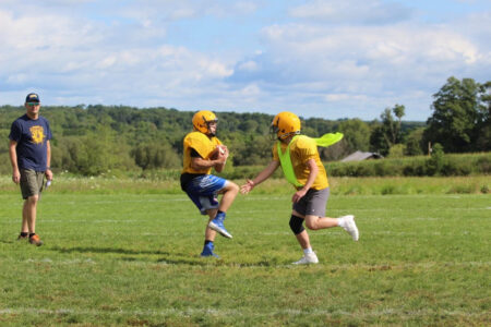 - Times Observer photo by Steve Younger Knights fullback Tucker Lindell makes a catch.