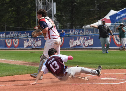- Times Observer photo by Matt Spielman Beekman, New York’s Rich Brown slides safely into home as Norwalk, Connecticut catcher Mike Marini secures a late throw during Game 1 of the Babe Ruth 13-15 World Series on Saturday at Diethrick Park in Jamestown, N.Y.