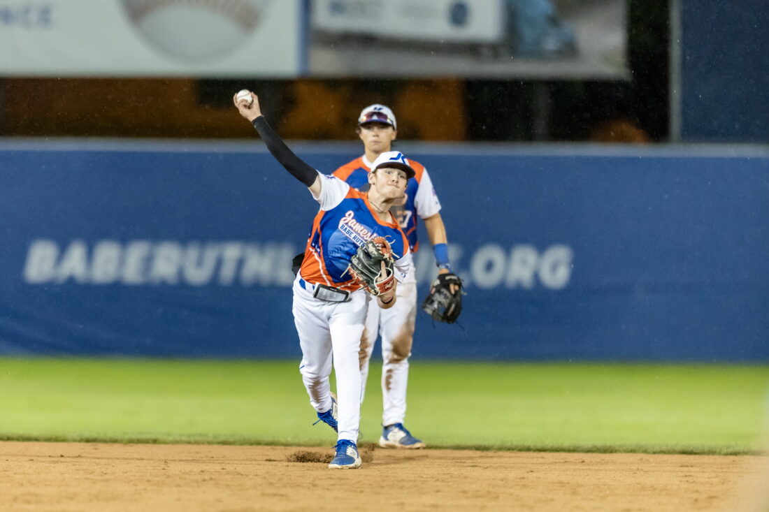 Jackson Burger led off the fourth for the Northeast Atlantic champions with a single to right field, and as heavy rain began to fall Putney uncorked a wild pitch to send Burger to second base. Umpires then decided to suspend the game for a delay that lasted just about a half-hour.
