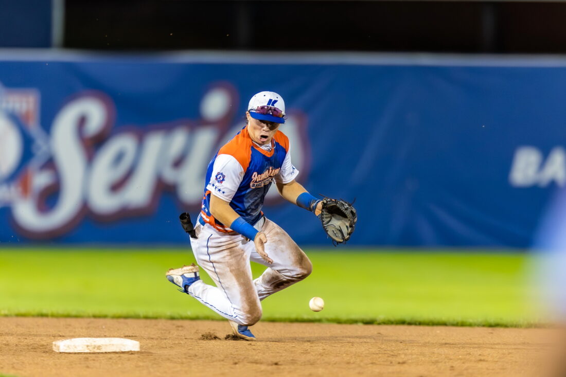 - Times Observer photo by Tim Frank Jamestown Krusaders’ Blake Herman attempts to secure a groundball during Game 4 of the Babe Ruth 13-15 World Series against Broomall Newtown, Pennsylvania on Saturday at Diethrick Park in Jamestown, N.Y.
