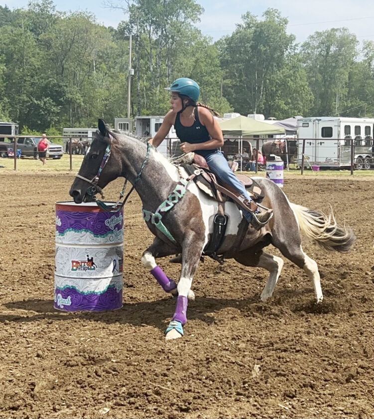 - Olivia Ekstrom participates in barrel racing on her horse, Shayde.