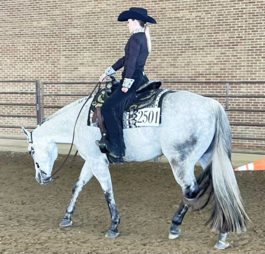 “His arthritis got really bad,” Morgan said about Stone. “He couldn’t do the barrel racing anymore and people always said that he would be a good show horse. He kind of inspired me to do that and he did really well with it.”