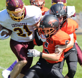 The turnover seemed to light a fire in the Crusaders’ offense, as their next two drives would result in Cherry touchdowns, with a combined 67 yards rushing between the drives. At the half, Sheffield trailed Elk County Catholic 20-6.