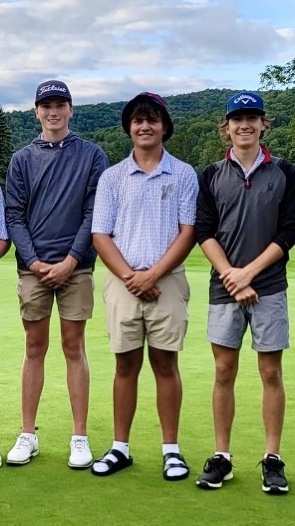 Photo submitted to Times Observer From left, Warren Blue’s Brady Berdine, Braddock Damore and Johnny Palmieri finished first at Saturday’s Bradford Invitational golf tournament at Pennhills Club.