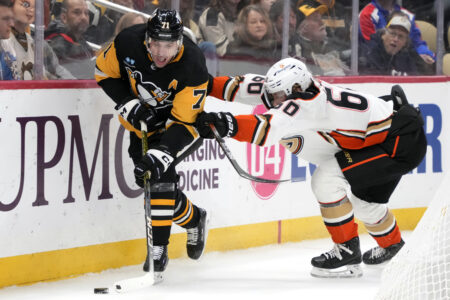 Pittsburgh was on a two-man advantage for 1:49 at the end of the third period because of a tripping call on McTavish and a separate delay of game penalty. Adam Henrique intercepted a Penguins’ pass and pushed it to McTavish, who beat Tristan Jarry on a breakaway.