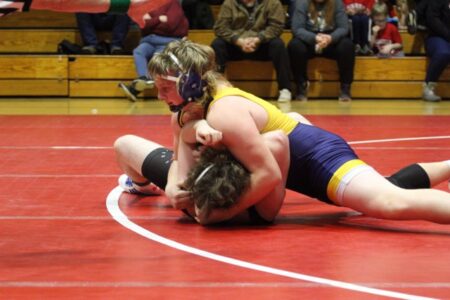Eisenhower put the match away with quick pins at 114 and 121 pounds. At 114, Rever Caudill needed just 1:44 to score the pin over Youngsville’s Sarah Blauser while at 121 pounds Griffin Williams pinned the Eagles’ Cole Johnson.