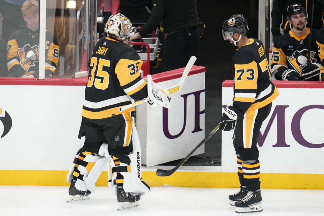 - Pittsburgh Penguins’ Tristan Jarry (35) leaves the game after being replaced by Alex Nedeljkovic after allowing three goals during the first period the Washington Capitals. AP Photo
