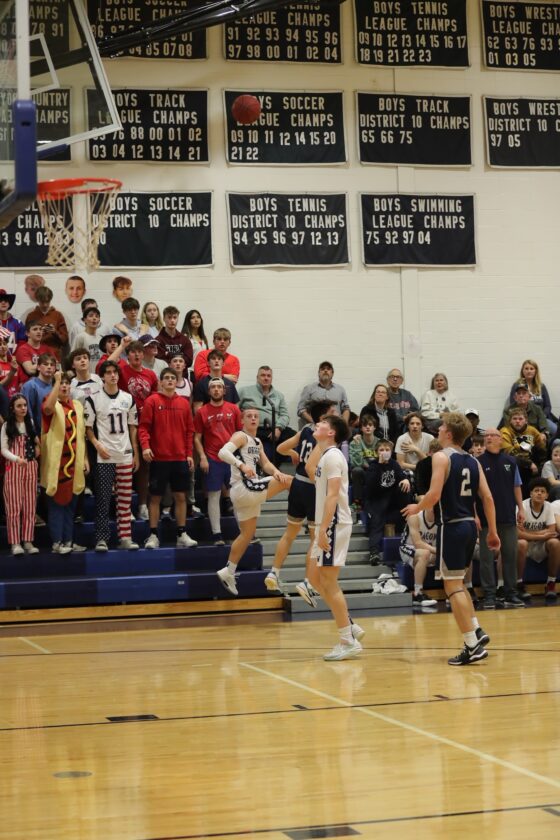 Photo by Mark Evans Warren’s Tommy Nyquist gets off a third-quarter buzzer-beating 3-pointer.