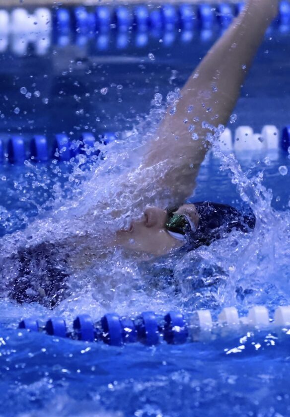 - Photo by Mark Evans Eliza Brook swims the backstroke.