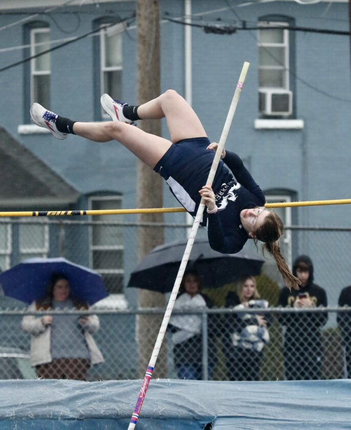 - Photo by Mark Evans Warren’s Gracie Page pole vaults in a meet against Titusville on Tuesday at War Memorial Field.