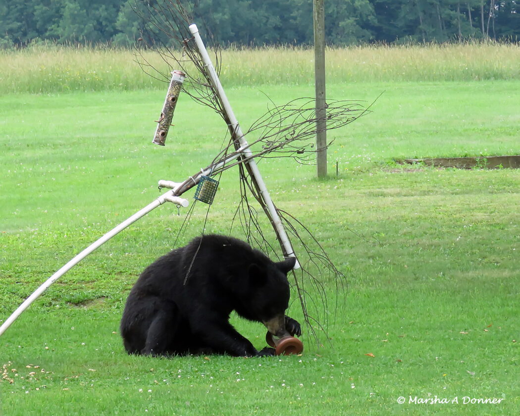 This young male bear took down a bird feeder, then hung around for days after the feeder was removed, hoping for an easy meal. Photo courtesy of Marsha Donner
