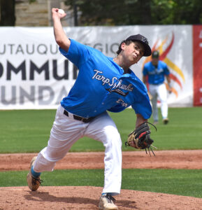 Times Observer photo by Matt Spielman Gage Hayes of the Jamestown Tarp Skunks, left, was one of three starting pitchers named to the Perfect Game Collegiate Baseball League first team as the league announced its 2024 All-League teams Sunday.