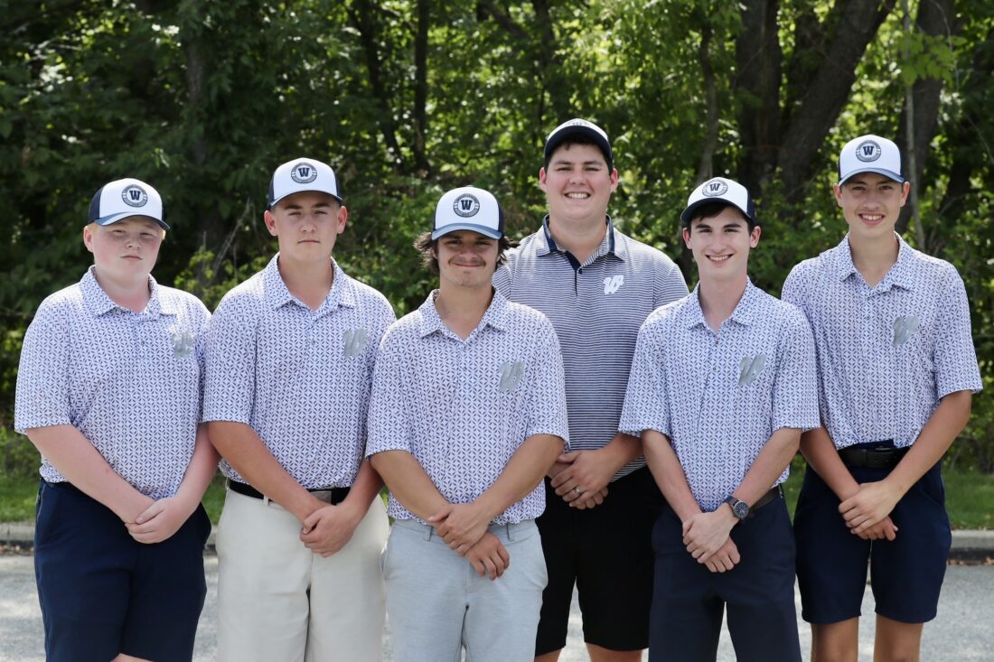 Warren golfers competing in Thursday’s Grape Picker Invitational at North East’s Lake View Country Club include, from left, in front, Hayden Hendricks, Gavin Haibach, Conner Zaffino, Collin Ellis, and Reid Olsen. In back is Warren head coach Nate Sandberg. Photo by Mark Evans