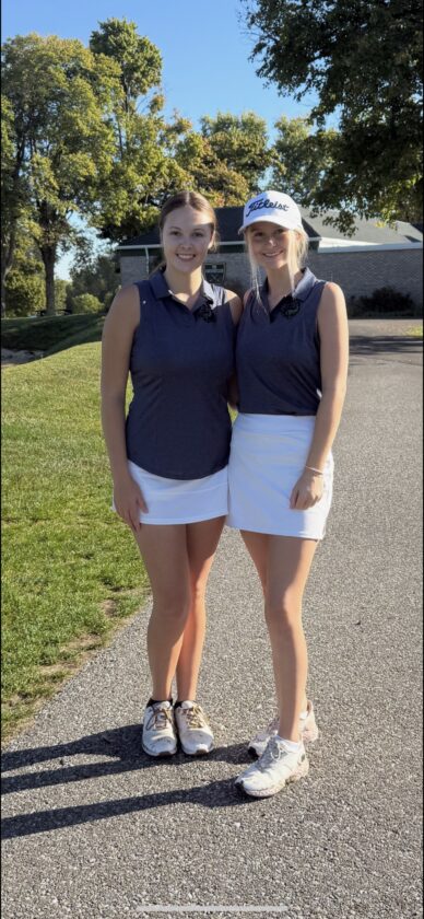 Warren’s Kate Shippee, left, advanced to the District 10 Girls Golf Championships this Saturday after a first-round score of 88 on Tuesday, while Elissa Errett, right, saw her senior season with the Lady Dragons come to an end. Submitted Photo