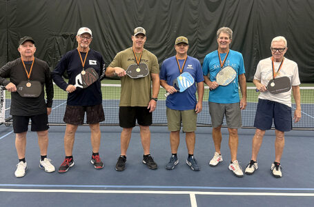 Pictured are Men’s 4.0+ winners: Jon Cable and Steve Bittinger, first place; Phil Gernovich and Don Mosher, second place; and Randy Rinke and Kelly Manning, third place.