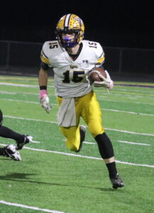 - Hudson Haight turns upfield after a catch for the lone Knights touchdown on Saturday. Times Observer Photo by Steve Younger