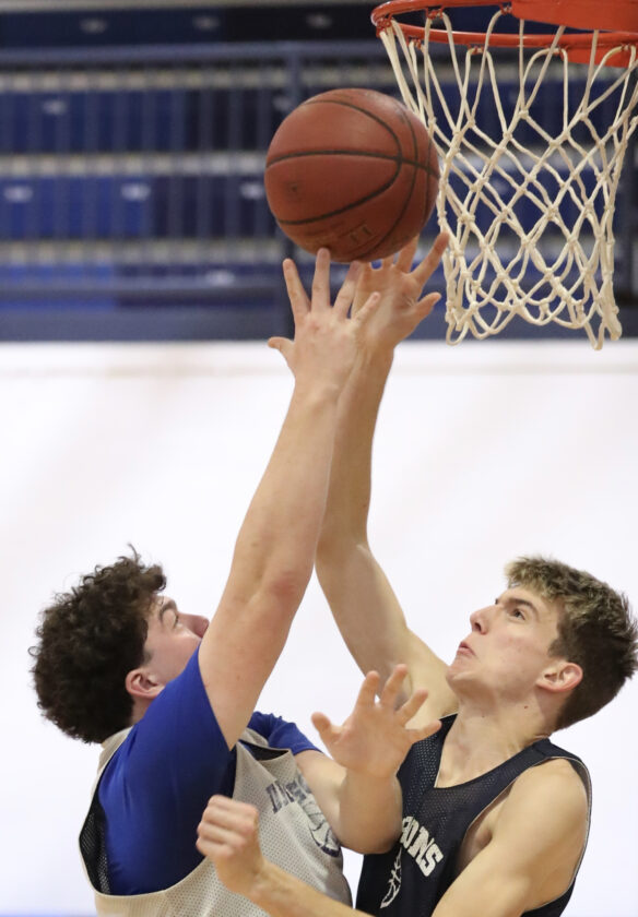 - Warren’s David Manning shoots over Colin Zdarko during practice earlier this month. Photo courtesy of Mark Evans