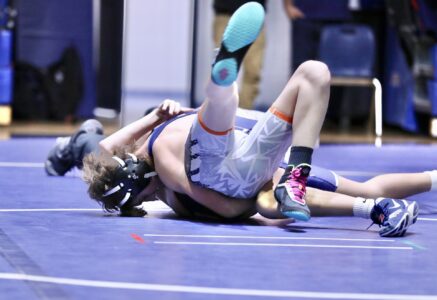 During the match between Eisenhower’s Collin Havers and Cranberry’s Matthew Antrilli, the lights in the Eisenhower gym went out in the second period and, after a 10-minute delay, the match was restarted with limited lighting and Havers leading 6-0. He would go in to win via technical fall to put the score at 30-28.