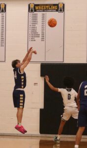 Freshman Liam Hanson had 19 points and a pair of three’s while his older brother, Austin Hanson, a junior had 17 points and 5 three’s to lead the Knights. Freshman Kymani Vine added another 14 points with four 3-pointers.