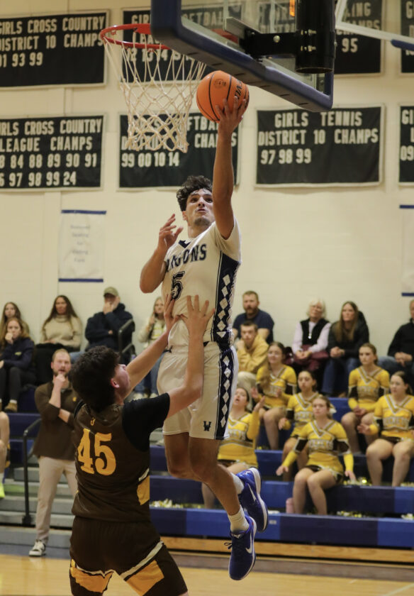 - Photo courtesy of Mark Evans Warren’s Logan Crissey takes the ball to the basket during Friday’s Region 5 boys basketball game against Titusville at Warren Area High School.