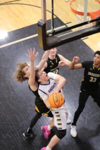 His 3-pointer at the 2:15 mark cut the deficit to 64-63 before Aden Satterfield made one of two free throws to give Iroquois a 65-63 lead with 1:26 remaining. Satterfield was fouled again and made one of two charity tosses just over 30 seconds later to extend the Braves’ advantage to 65-62 at the 53-second mark.