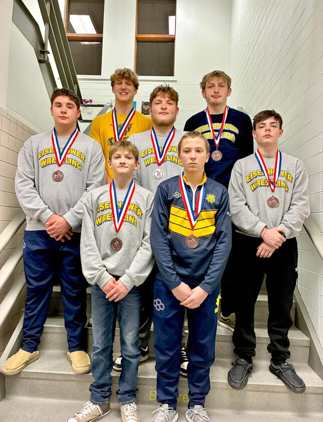 The Eisenhower wrestling team advanced seven wrestlers to districts, starting this Friday at Sharon High School. “I am extremely proud of these guys and am very excited that four of them are freshmen,” Knights head coach Jared Lindell said. “This time of year it’s all about advancing to the next round.” For the Knights, Lane Morrison finished fourth at 107 pounds; Huck Fedorchuk (121) and Collin Havers (172) took fifth place; Bryceton Wilkins (189) finished in sixth place; and Bryce Spinks (215), Wesley Wilcox (285) and Ramsey Williams (114) all finished seventh, and will be moving on.