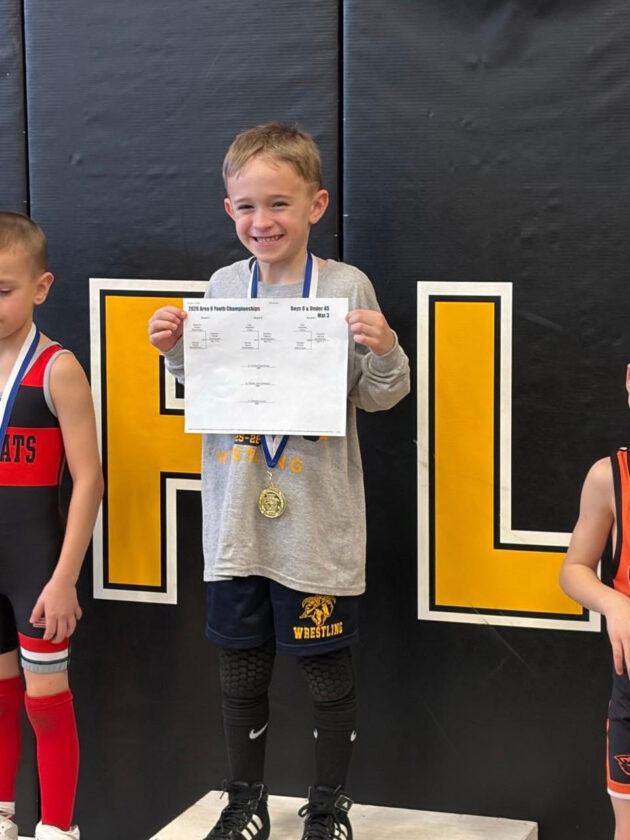 Submitted Photo Grayson Kitchel smiles big after taking first in his weight class.
