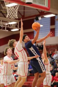Photo by Mark Evans Warren’s Allen Eaton scores on a layup during Friday’s District 10 4A third-place game against Hickory at Meadville High School.