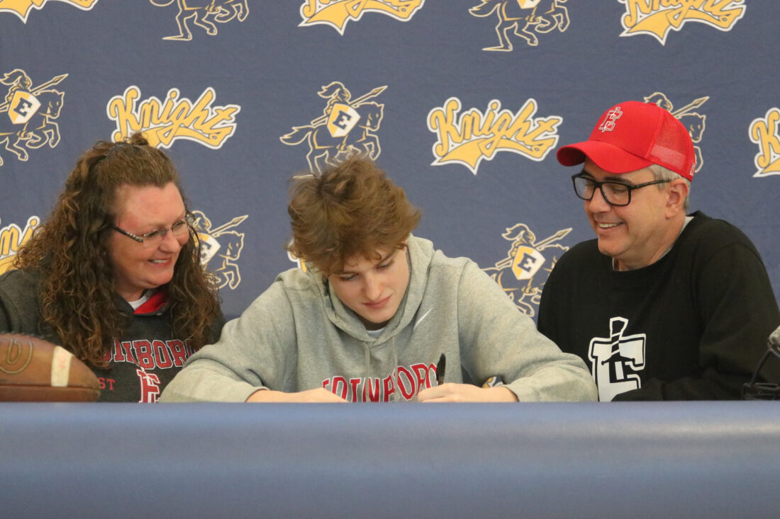 Gavin Lindemuth, Eisenhower’s 6-foot-5, 200-pound tight end/defensive end has signed his national letter of intent to continue his football and academic pursuits at NCAA Division II PennWest Edinboro.