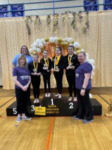 Level Xcel Silver Senior Division: Kenna Nobles on balance beam, 9.100; Level 3 Junior A Division: Hallie Miller on balance beam, 9.200; Level 6 Senior Division: Madelyn Smart on balance beam 9.300, all-around, 34.300; Level 6 Junior Division: Ellie Sahli on uneven bars, 7.6000; Level 6 Junior Division: Riley Hultman on vault, 8.900; Level 7 Junior Division: Ruth Sienkowicz on uneven bars, 8.600, floor 9.600 and all-around, 35.700; and Level 8: Meredith Smyth on vault 8.750, balance beam, 8.600, floor, 9.450 and all-around, 33.800.